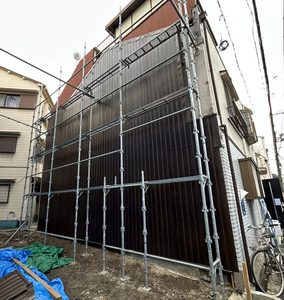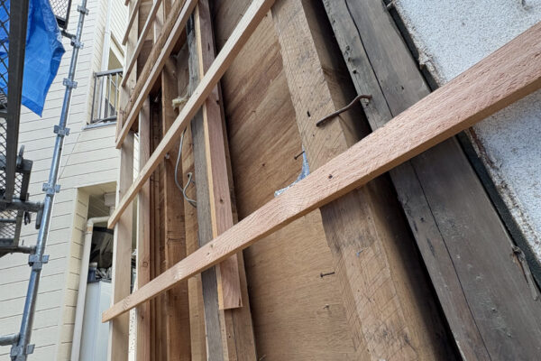 長屋や古家を解体すると、隣家がむき出しになってしまうことがあります。雨水の侵入や劣化の主な原因になる為、しっかりと補修が必要です。